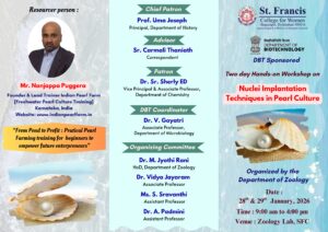 In Pearl City – Hyderabad, St Francis college for women, Department of Zoology, in association with Indian Pearl Farm, organised a two-day intensive hands-on workshop titled